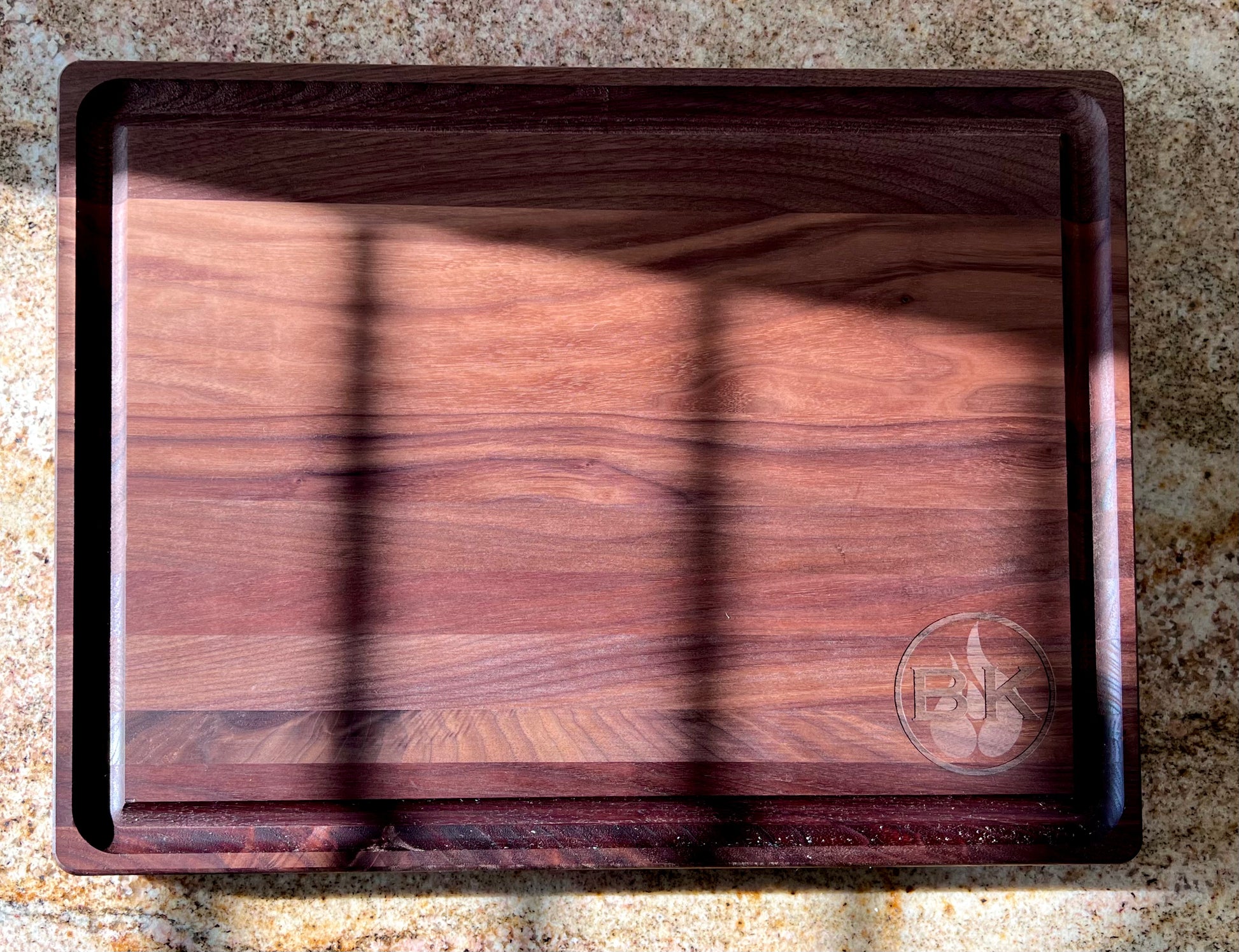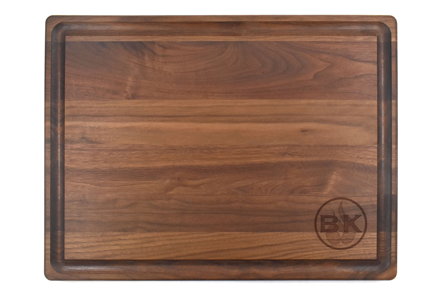 15" Butcher Block 1 1/4" thick wood, with juice grooves. Excellent for chopping and prepping food. Comes with rubber feet to minimize movement. Made in Canada
